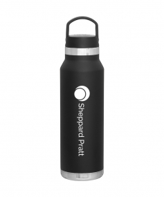 25 oz double wall 18/8 stainless steel thermal bottle with copper vacuum insulation, threaded insulated lid with carrying handle, high polish accent, stainless steel base, and powder coated finish. Hand wash recommended; Do not microwave. Dimensions: 10 H x 3".