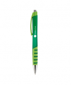 Plunger action with stylish two-tone rubberized frost barrel. Chrome ferrule and plunger. Black medium point. High-quality Glide-Write ink. Complies with Prop 65. 5 5/8" L x 7/16" Diameter